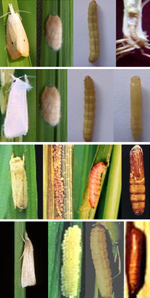 auricilius Dudgeon (kelima spesies tersebut termasuk ordo Lepidoptera dan famili Pyralidae), dan penggerek batang padi merah jambu Sesamia inferens (Walker) (spesies ini termasuk ordo Lepidoptera dan famili Noctuidae).