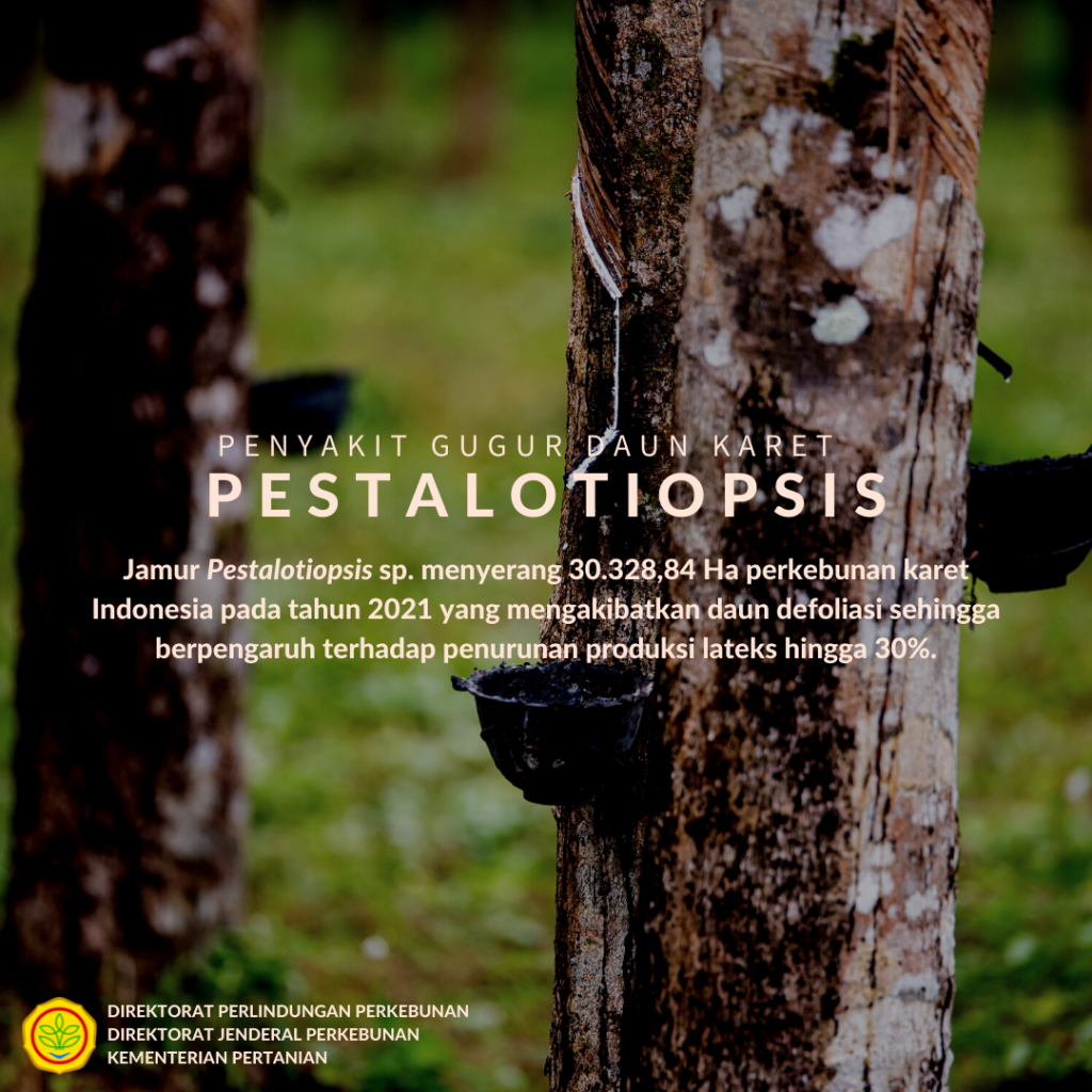 Penyakit gugur daun karet yang disebabkan oleh jamur Pestalotiopsis sp telah menyerang beberapa perkebunan karet di Indonesia. Diperkirakan kehilangan produksi setiap tahunnya akibat kerusakan oleh penyakit karet mencapai 5 – 15%.  Data terakhir pada tahun 2021, sebanyak 30.328,84 Ha kebun karet terinfeksi jamur tersebut yang berdampak pada penurunan produksi lateks hingga 30% dari biasanya.