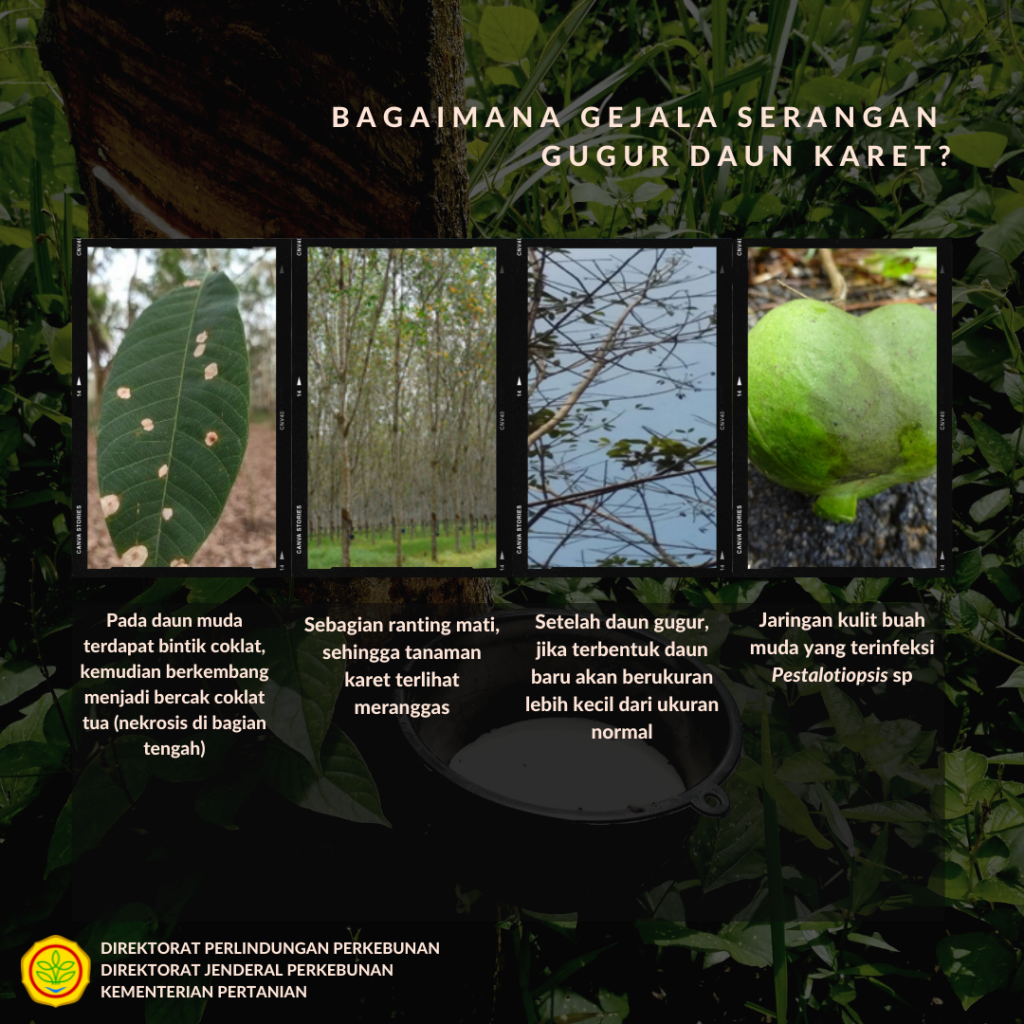Sumber: https://ditjenbun.pertanian.go.id/: Penyakit Gugur Daun Karet Pestalotiopsis Pada Tanaman Karet
