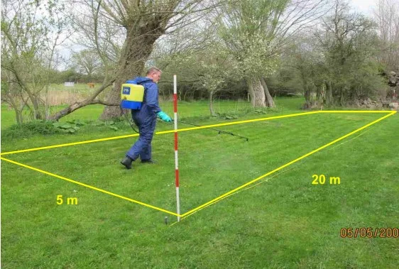 Praktik aplikasi penyemprotan pestisida untuk mendapatkan hasil yang terbaik harus memperhatikan setidaknya 3 hal yaitu Laju penyemprotan, tinggi bidang semprotan dan tekanan dari alat semprot yang konstan.
