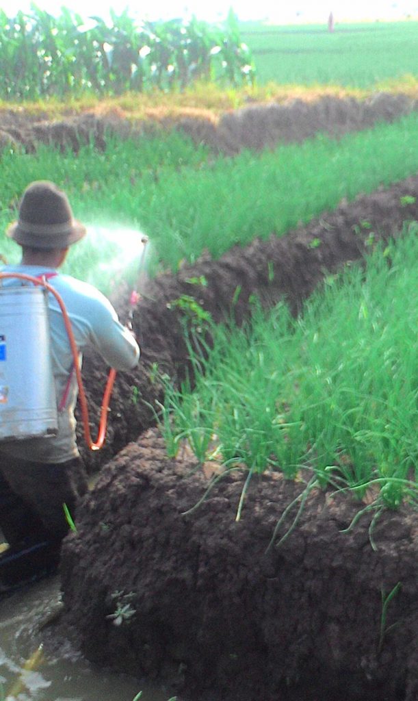 Dalam sebuah riset yang dilakukan oleh Bapak Panut Djojosumarto, petani di Dieng (juga Garut dan Pangalengan) biasa menyemprot kentang menggunakan power sprayer dengan volume semprot sekitar 8 drum per hektar (bahkan ada yg lebih). Ini terlalu banyak, karena kentang cukup disemprot dengan 600 – 900 liter/ha.
