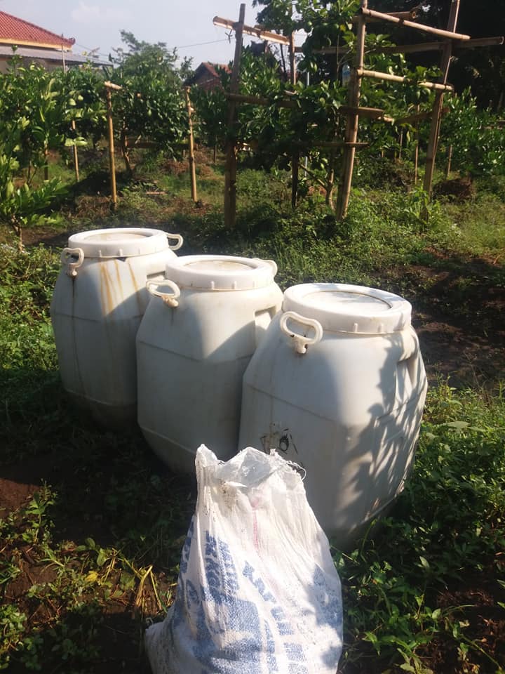 Masukkan semua item di atas dan tutup/anaerob. Tempatkan drum tersebut di sekitaran lokasi kebun/sawah, terpapar sinar matahari, mengikuti teori atmospheric temperature.